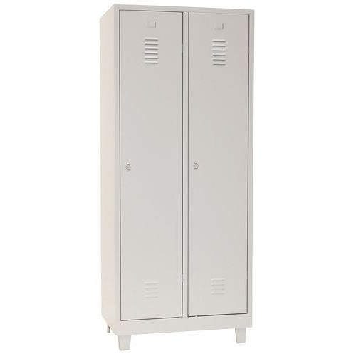 Zváraný šatník s medzistenou Manutan Expert DURO PROFI na nohách, 2 oddiely, sivý/sivý, otočný uzáver