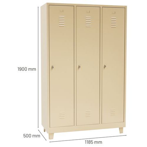Zváraný šatník s medzistenou Manutan Expert DURO PROFI na nohách, 3 oddiely, béžový/béžový, otočný uzáver