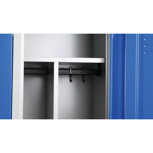 Súčasťou balenia je polica, tyč na vešiaky, háčik na odevy a vnútorná medzistena. K variantu s cylindrickým zámkom sa dodávajú dva kľúče.