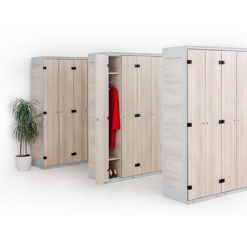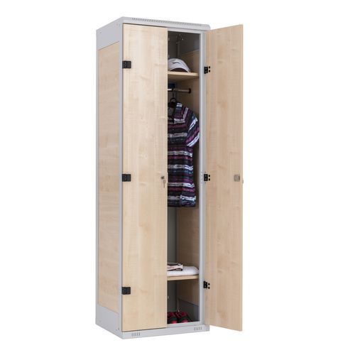 | Názov produktu | Zváraný šatník Tony I, 2 oddiely, cylindrický zámok, sivý/borovica |
