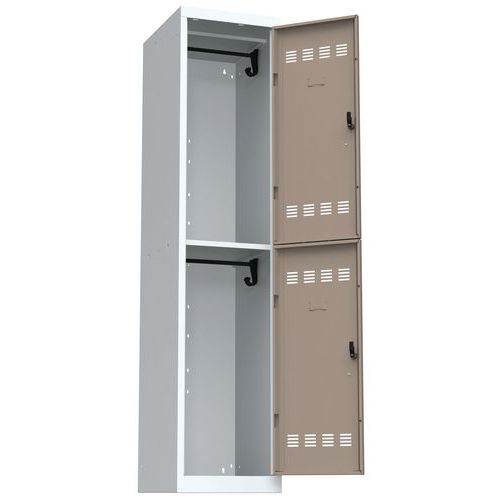 Zváraný šatník Vinco, 1 stĺpec, 2 boxy, 400 mm, otočný uzáver, sivý/hnedý Zváraný šatník Vinco, 1 stĺpec, 2 boxy, 400 mm, otočný uzáver, sivý/hnedý
