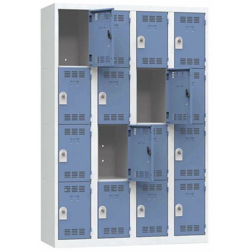 Zvárané šatníky Vinco, 4 stĺpce, 16 boxov, 300 mm, otočný uzáver