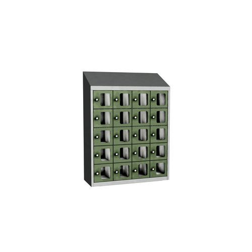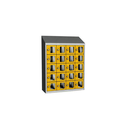Zvárané skrine na osobné veci Olaf s priehľadnými dvierkami, 20 boxov, otočný uzáver