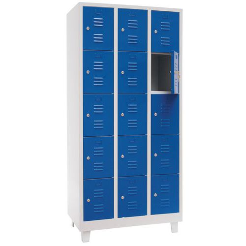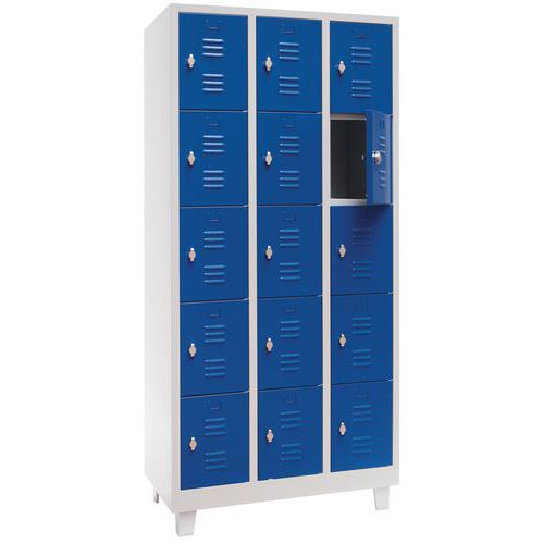 | Názov produktu | Zváraný šatník Manutan Expert Antohny na nohách, 15 boxov, bez zámku, sivý/modrý |