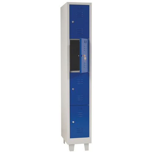 | Názov produktu | Zváraný šatník Manutan Expert Johny na nohách, 4 boxy, bez zámku, sivý/modrý |