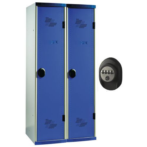 | Názov produktu | Zváraný šatník s medzistenou Acial, 2 oddiely, 400 mm, kódový zámok, sivý/modrý |